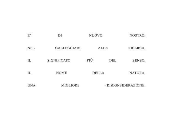 Il punto più alto rappresentante e contenente l’inaccessibile è la roccia, i muschi, l’abbraccio di una nuvola: la montagna. Ora si cammina a piedi scalzi, ma non sulla montagna. Ora si respira la bellezza dell’inviolato, ma non sulla montagna. Ora ci si blocca davanti ai divieti d’accesso, ma non sulla montagna. […] Torniamo indietro, la placenta della terra, la veste reale di ogni concepimento, il bisogno di partire solo se si può fare ritorno – perché alla fine si torni sempre al meglio e al vero. È di nuovo nostro, nel galleggiare alla ricerca, il significato più del senso, il nome della natura, una migliore (ri)considerazione. (Maria Elena Tripaldi, Il Suon di Lei, 2020)